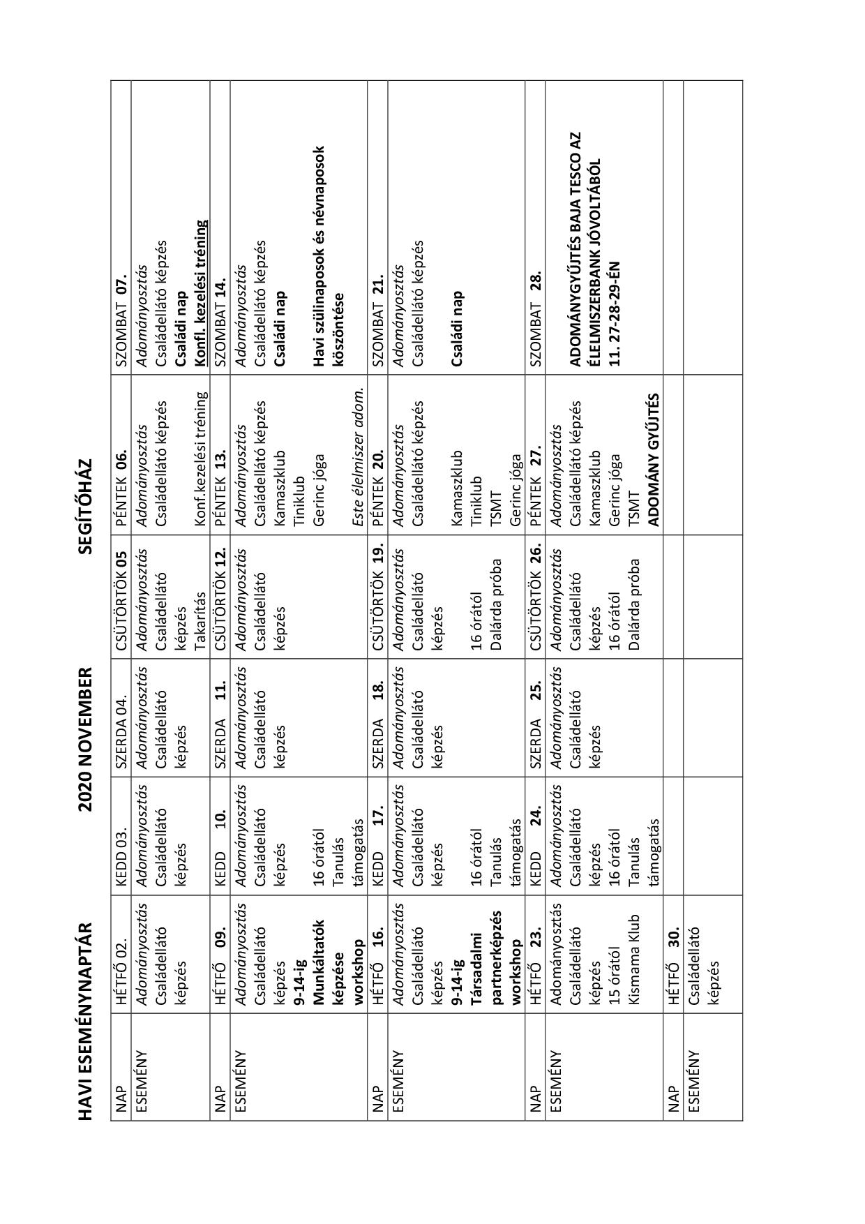 A Segítőház látogatása bizonytalan ideig szünetel a családok részére.